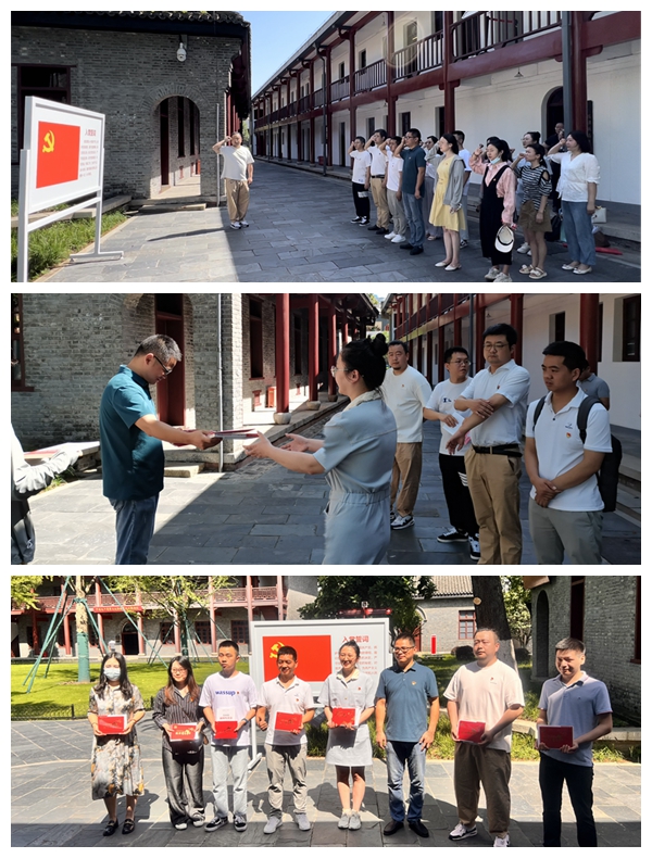 在武昌農(nóng)民運動講習所,依次參觀了講習所保留完好的教室、食堂、宿舍和大操場,于一桌一椅,一床一榻中深深感受到革命先輩們堅定的革命信仰與艱苦奮斗的決心。在毛澤東舊居,聽講解員講述毛澤東同志在此故居的期間,完成了具有里程碑意義的著作《湖南農(nóng)民運動考察報告》——成為中國共產(chǎn)黨領(lǐng)導農(nóng)民運動的光輝著作與重要的指導性文件。在中共五大會址紀念館前,全體黨員面向鮮紅的黨旗,舉起右拳,重溫入黨誓詞。表達不忘初心、砥礪奮進的堅定信念和決心。支部紀檢委員、總工程師邵國強給黨員過政治生日,贈送了政治生日賀卡和學習書籍。