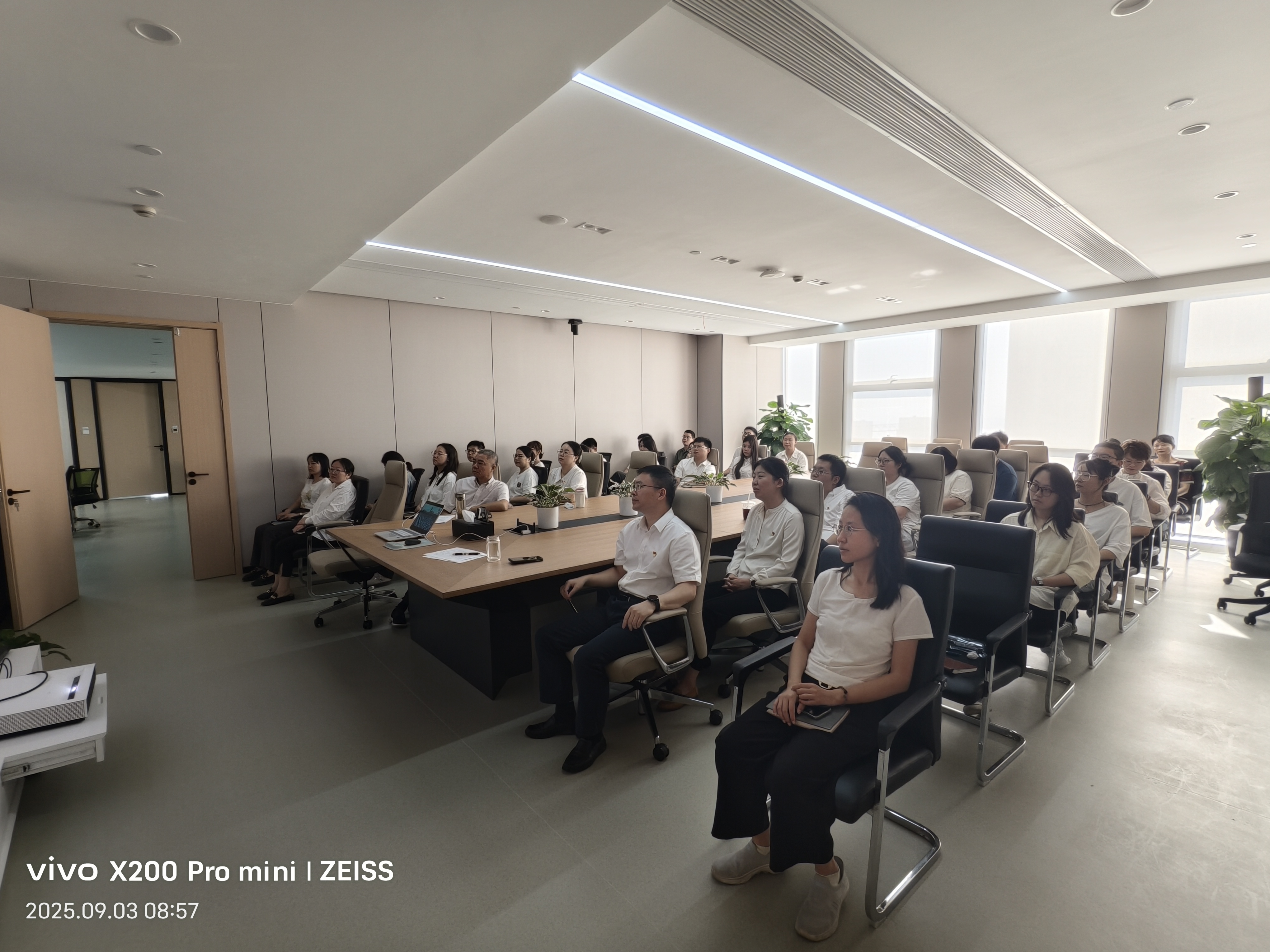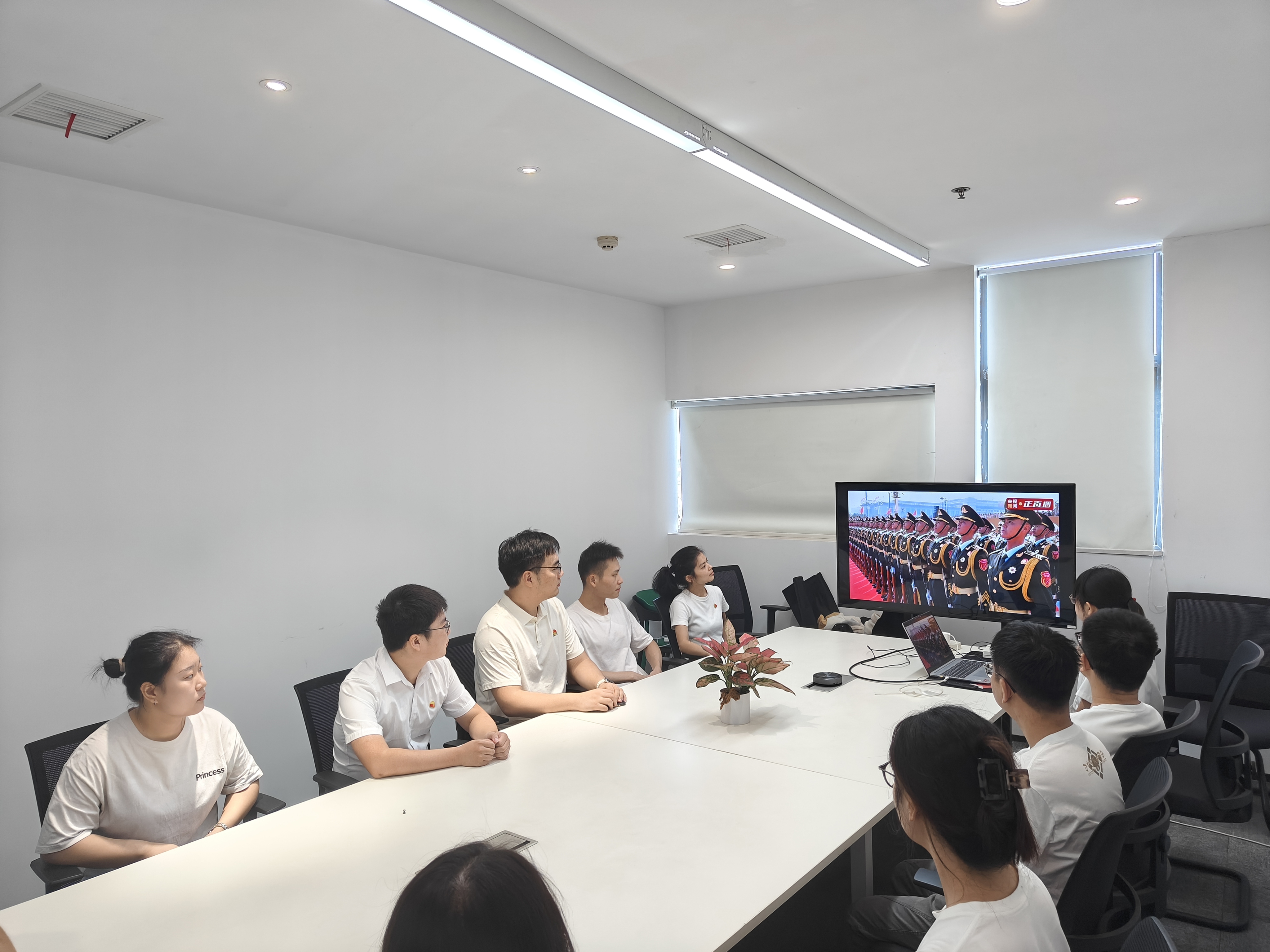 數(shù)旅集團(tuán)組織集團(tuán)業(yè)務(wù)事業(yè)部、研發(fā)管理中心、紫荊公司在36樓會(huì)議室觀看“紀(jì)念中國(guó)人民抗日戰(zhàn)爭(zhēng)暨世界反法西斯戰(zhàn)爭(zhēng)勝利80周年大會(huì)”專(zhuān)題節(jié)目