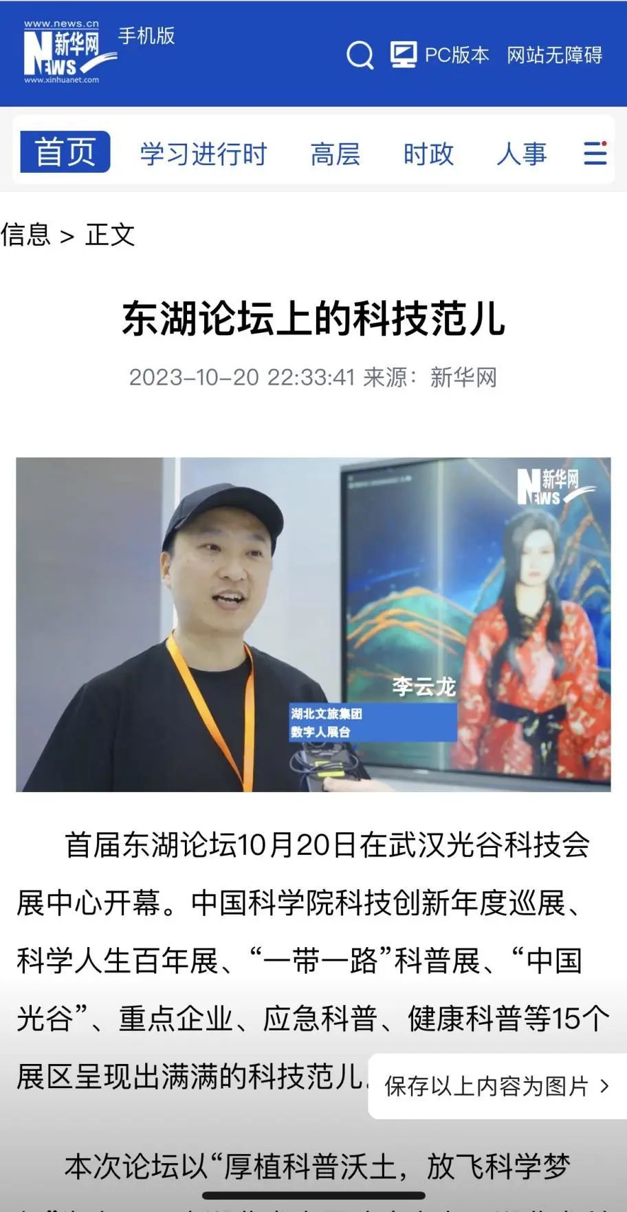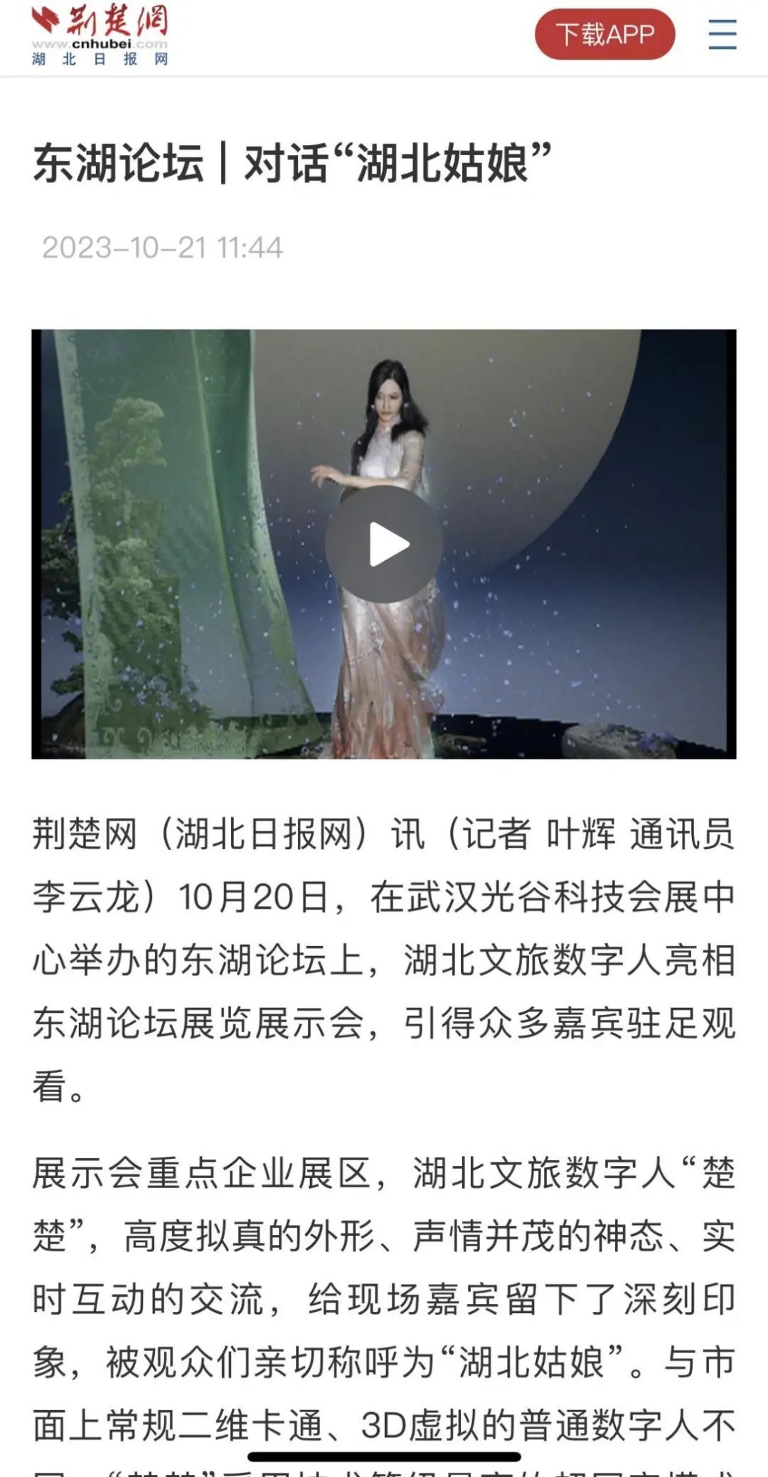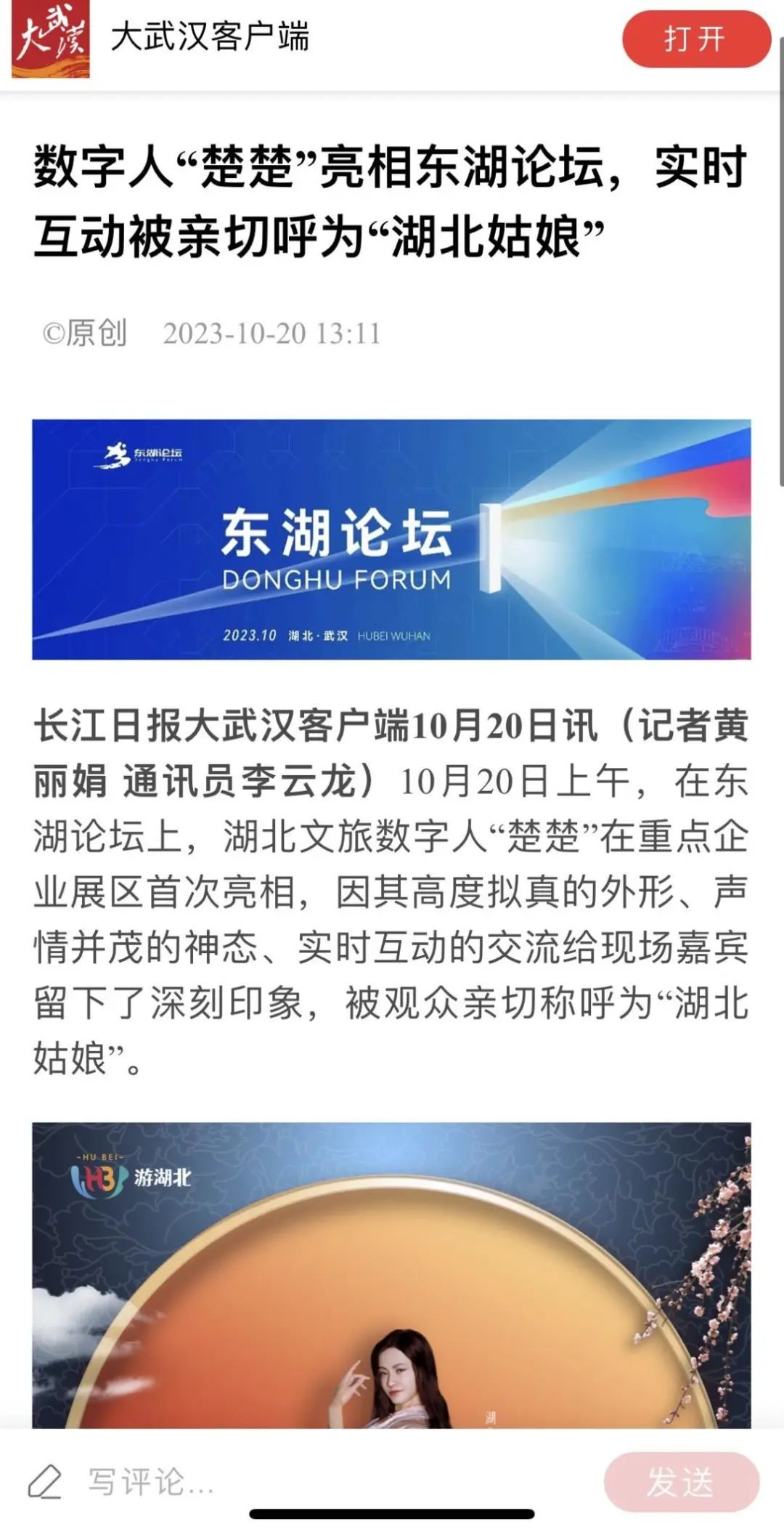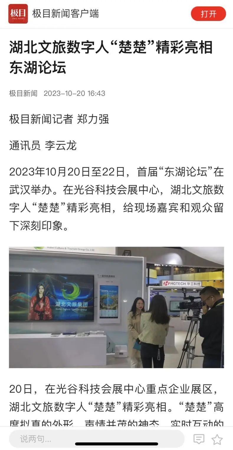 數(shù)旅集團(tuán)數(shù)字人成為“東湖論壇展示會”重點(diǎn)企業(yè)展區(qū)的亮點(diǎn),引來各方關(guān)注,各大媒體爭相報(bào)道。期間長江日報(bào)、新華網(wǎng)、武漢廣播電視臺、湖北日報(bào)、荊楚網(wǎng)、極目新聞等主流媒體紛紛聚焦,進(jìn)行了全方位、多視角報(bào)道。