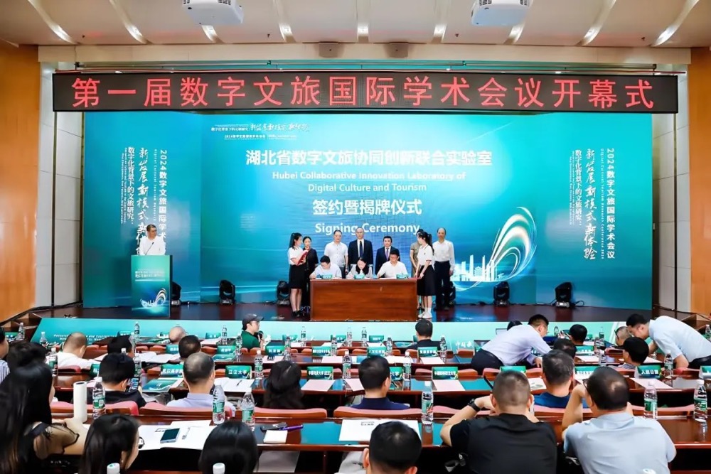 6月1日,在第一屆數(shù)字文旅國(guó)際學(xué)術(shù)會(huì)議開(kāi)幕式上,湖北大學(xué)校長(zhǎng)劉建平與湖北省文化和旅游廳副廳長(zhǎng)唐昌華為湖北省數(shù)字文旅協(xié)同創(chuàng)新聯(lián)合實(shí)驗(yàn)室揭牌。聯(lián)合實(shí)驗(yàn)室建設(shè)將推動(dòng)數(shù)字技術(shù)在文旅場(chǎng)景中的應(yīng)用創(chuàng)新、成果轉(zhuǎn)化與高質(zhì)量人才培養(yǎng),成為開(kāi)展產(chǎn)學(xué)研深度合作和協(xié)同創(chuàng)新的重要基地和科創(chuàng)平臺(tái)。