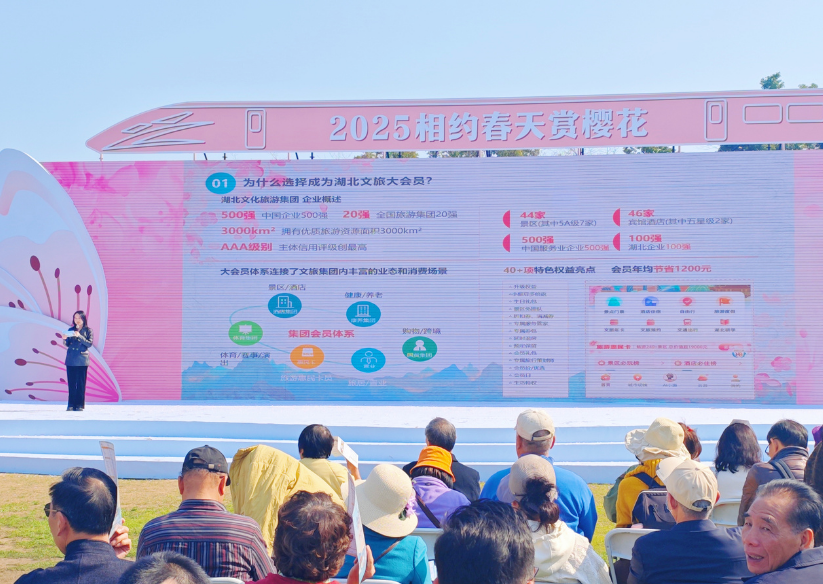 活動期間,湖北數(shù)字文旅集團亮相宣傳推介會,并專題推介了“湖北文旅大會員”平臺櫻花季限時驚喜福利。據(jù)介紹,櫻花季活動期間,平臺會員消費可享3倍積分,積分可兌換櫻花限定好禮;現(xiàn)場掃碼加入會員即可參與抽獎,豐厚獎品琳瑯滿目,洪山賓館下午茶體驗券、酒店券、門票券、度假線路券等一應俱全。此外,會員完成每日打卡可加速提升會員等級,金卡、鉆石卡的尊享權益觸手可及?;顒蝇F(xiàn)場,觀眾互動積極踴躍,氣氛熱烈非凡,大家紛紛表達出對平臺各項福利的濃厚興趣與高漲熱情,熱度持續(xù)攀升。
