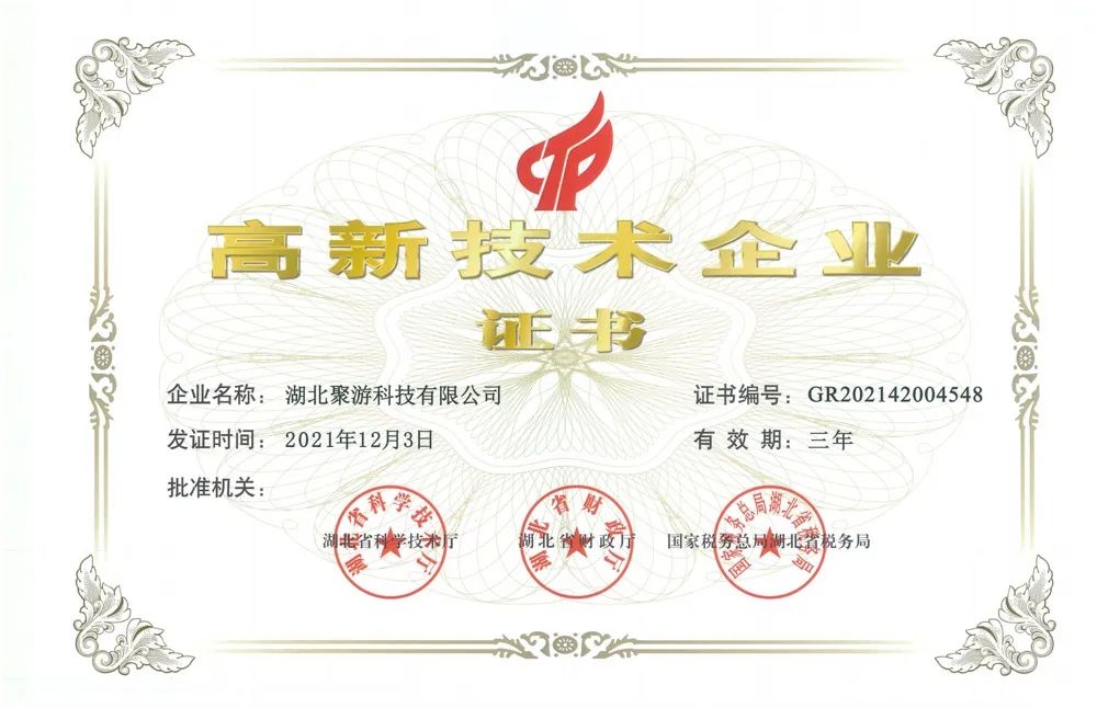 聚游科技獲得全國高新技術企業(yè)認定
