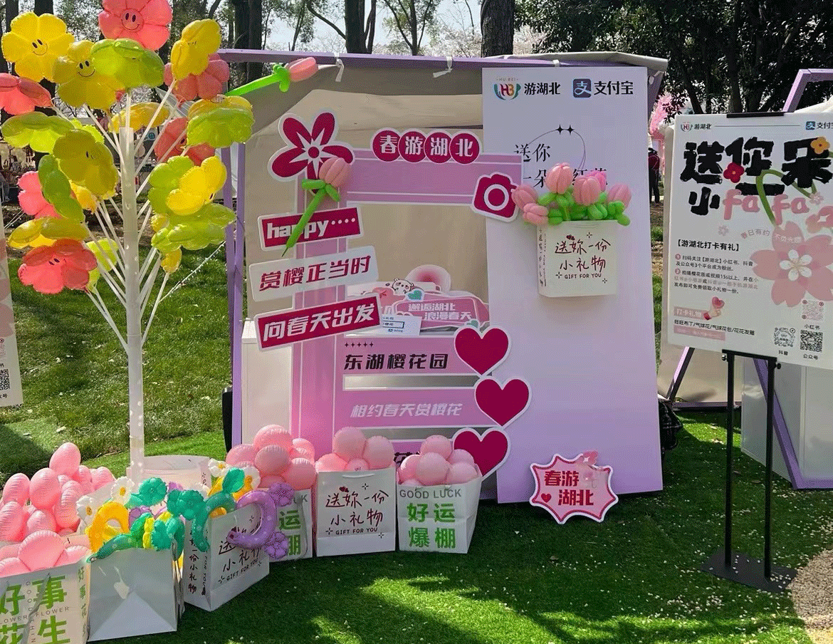 “游湖北”走進(jìn)東湖櫻花園開展“送你一朵小紅花”宣傳活動
