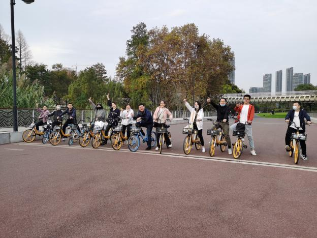 下午17時30分,結(jié)束1個半小時騎行體驗的伙伴們聚集在終點處集體合影留念,當(dāng)天的活動落下圓滿帷幕。