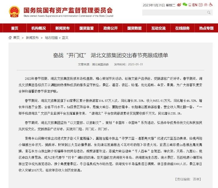 本周熱點(diǎn) 奮戰(zhàn)“開門紅” 湖北文旅集團(tuán)交出春節(jié)亮眼成績(jī)單。2023年春節(jié)假期,湖北文旅集團(tuán)搶抓市場(chǎng)機(jī)遇期,精心策劃節(jié)慶活動(dòng),創(chuàng)新文旅產(chǎn)品供給,受到游客廣泛好評(píng)。集團(tuán)旗下41家景區(qū)累計(jì)接待游客104.87萬(wàn)人次,同比增長(zhǎng)35.31%,收入9652.01萬(wàn)元,同比增長(zhǎng)46.52%,增長(zhǎng)率均高于全國(guó)、全省平均水平。5A級(jí)景區(qū)陣容中,恩施大峽谷、襄陽(yáng)古隆中、長(zhǎng)陽(yáng)清江畫廊游客量、營(yíng)業(yè)收入同比翻一番。“一部手機(jī)游湖北”文旅產(chǎn)業(yè)監(jiān)測(cè)平臺(tái)發(fā)揮重要作用,“游湖北”平臺(tái)在線旅游累計(jì)實(shí)現(xiàn)營(yíng)收超千萬(wàn)元,同比增長(zhǎng)238.1%。堅(jiān)持“以文塑旅、以旅彰文”,策劃“中國(guó)年·中國(guó)味”系列活動(dòng),弘揚(yáng)中華優(yōu)秀傳統(tǒng)文化和民族民風(fēng)民俗文化,受到游客廣泛好評(píng),實(shí)現(xiàn)開門穩(wěn)、開門紅、開門好。 首破千萬(wàn)大關(guān),數(shù)旅集團(tuán)經(jīng)營(yíng)新春“兔”飛猛進(jìn)。兔年春節(jié)假期,是疫情防控政策放開后首個(gè)長(zhǎng)假,旅游市場(chǎng)持續(xù)增長(zhǎng),全省游客出游熱情高漲,2023年春節(jié)期間,數(shù)旅集團(tuán)各項(xiàng)經(jīng)營(yíng)指標(biāo)提升明顯。從除夕到正月初六(1月21日至1月27日),數(shù)旅集團(tuán)“游湖北”平臺(tái)營(yíng)收首破千萬(wàn)元大關(guān),達(dá)到1008.62萬(wàn)元,同比增長(zhǎng)238.1%,服務(wù)游客過(guò)10萬(wàn)人。執(zhí)行湖北文旅集團(tuán)“美好生活再出發(fā)”惠民優(yōu)惠券活動(dòng),發(fā)放消費(fèi)券8.27萬(wàn)張約404萬(wàn)元。湖北數(shù)字文旅集團(tuán)加快轉(zhuǎn)型發(fā)展、搶抓文旅政策機(jī)遇,營(yíng)收、利潤(rùn)等主要經(jīng)營(yíng)指標(biāo)創(chuàng)歷史性新高,內(nèi)生動(dòng)力持續(xù)增強(qiáng),科技實(shí)力顯著提升,平臺(tái)運(yùn)營(yíng)成效凸顯,品牌影響力不斷彰顯,各項(xiàng)工作取得新成效。 湖北數(shù)字文旅集團(tuán)當(dāng)選湖北省數(shù)字內(nèi)容服務(wù)行業(yè)協(xié)會(huì)副會(huì)長(zhǎng)單位。2月1日,在省直機(jī)關(guān)工委、湖北省民政廳單位指導(dǎo)下,湖北省數(shù)字內(nèi)容服務(wù)行業(yè)協(xié)會(huì)第一屆一次會(huì)員大會(huì)正式召開。會(huì)上,湖北數(shù)字文旅集團(tuán)作為發(fā)起單位之一當(dāng)選副會(huì)長(zhǎng)單位,集團(tuán)總經(jīng)理羅圓當(dāng)選協(xié)會(huì)副會(huì)長(zhǎng)。未來(lái),湖北省數(shù)字內(nèi)容服務(wù)行業(yè)協(xié)會(huì)將順應(yīng)數(shù)字內(nèi)容創(chuàng)新發(fā)展趨勢(shì),抓住數(shù)字化轉(zhuǎn)型新機(jī)遇,堅(jiān)持創(chuàng)新賦能,有效整合高校智力資源、政府政策資源以及社會(huì)資本資源,搭建行業(yè)交流平臺(tái),建立高效溝通協(xié)調(diào)機(jī)制,營(yíng)造良好產(chǎn)業(yè)發(fā)展環(huán)境,推動(dòng)技術(shù)實(shí)業(yè)結(jié)合、產(chǎn)學(xué)研用融合、標(biāo)準(zhǔn)體系建設(shè)等,助力湖北數(shù)字內(nèi)容服務(wù)行業(yè)高質(zhì)量發(fā)展。 最新資訊 ● 重慶全力推進(jìn)巴蜀文化旅游走廊建設(shè)。近日,2023年重慶市文化和旅游工作會(huì)議召開,推進(jìn)建設(shè)“承千年文脈、鑄人文精神、樹時(shí)代新風(fēng)、強(qiáng)創(chuàng)新品質(zhì)”的文化強(qiáng)市和世界知名旅游目的地。據(jù)了解,未來(lái)重慶將實(shí)施培育世界級(jí)休閑旅游勝地行動(dòng)計(jì)劃,按照打造國(guó)際范、中國(guó)味、巴蜀韻的世界級(jí)休閑旅游勝地的建設(shè)定位,印發(fā)實(shí)施《重慶市貫徹落實(shí)〈巴蜀文化旅游走廊建設(shè)規(guī)劃〉實(shí)施方案》,進(jìn)一步做靚都市旅游名片,加快都市旅游設(shè)施建設(shè),提升巴蜀文化旅游走廊的國(guó)際認(rèn)可度、知名度、美譽(yù)度。 ● 金馬游樂擬開展親子樂園主題相關(guān)業(yè)務(wù)。廣東金馬游樂股份有限公司發(fā)布關(guān)于擬開展對(duì)外投資事宜的公告:擬以自有資金投資不少于人民幣5000萬(wàn)元受讓中山市紫馬嶺公園親子樂園項(xiàng)目15年的經(jīng)營(yíng)權(quán),項(xiàng)目主要建設(shè)內(nèi)容為符合項(xiàng)目親子樂園主題的相關(guān)業(yè)務(wù)及項(xiàng)目設(shè)置的相關(guān)游藝游樂設(shè)備。據(jù)金馬游樂表示,本次對(duì)外投資事宜符合公司的總體發(fā)展戰(zhàn)略和未來(lái)發(fā)展需要。 ● 國(guó)內(nèi)首家小王子主題樂園正式動(dòng)工。近日,位于廣州黃埔區(qū)的中法創(chuàng)意永續(xù)農(nóng)業(yè)產(chǎn)業(yè)項(xiàng)目暨小王子主題樂園正式動(dòng)工。據(jù)了解,該項(xiàng)目融合法國(guó)浪漫元素和設(shè)計(jì)理念,以法國(guó)童話名著《小王子》故事性為基底,對(duì)標(biāo)法國(guó)小王子主題樂園,打造國(guó)內(nèi)首家、也是全球第二家小王子主題樂園,項(xiàng)目邀請(qǐng)迪士尼、環(huán)球影城的主設(shè)計(jì)團(tuán)隊(duì)共同主導(dǎo)創(chuàng)意設(shè)計(jì),從游樂設(shè)施、體驗(yàn)內(nèi)容、科技應(yīng)用、景觀環(huán)境等進(jìn)行全方位