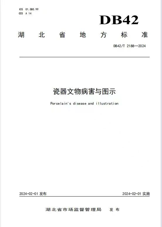 湖北首例可移動文物保護(hù)地方標(biāo)準(zhǔn)發(fā)布實(shí)施。近日,由湖北省文化和旅游廳指導(dǎo),湖北省博物館主編,湖北省標(biāo)準(zhǔn)化與質(zhì)量研究院、湖北省古建筑保護(hù)中心、武漢大學(xué)歷史學(xué)院參編的湖北省地方標(biāo)準(zhǔn)《瓷器文物病害與圖示》(標(biāo)準(zhǔn)號:DB42/T2188-2024)作為湖北省地方性標(biāo)準(zhǔn)由湖北省市場監(jiān)督管理局正式發(fā)布并實(shí)施。這是國內(nèi)第一個瓷器文物病害圖示標(biāo)準(zhǔn),也是湖北首例可移動文物保護(hù)行業(yè)地方性標(biāo)準(zhǔn)。