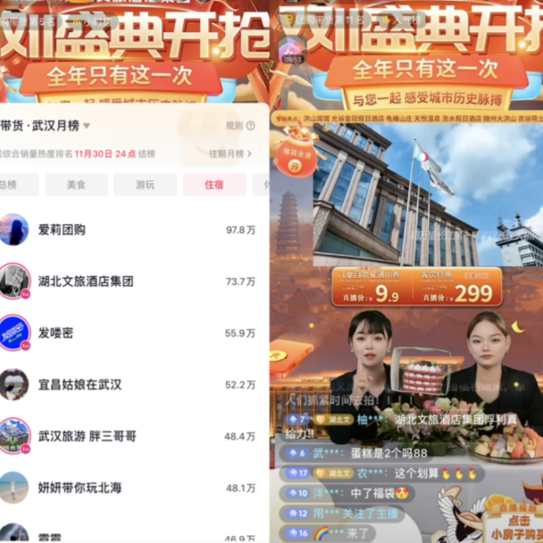 智旅動(dòng)態(tài)周報(bào) 第157期|數(shù)旅集團(tuán) “雙十一”直播 躋身武漢團(tuán)購帶貨月榜第2名