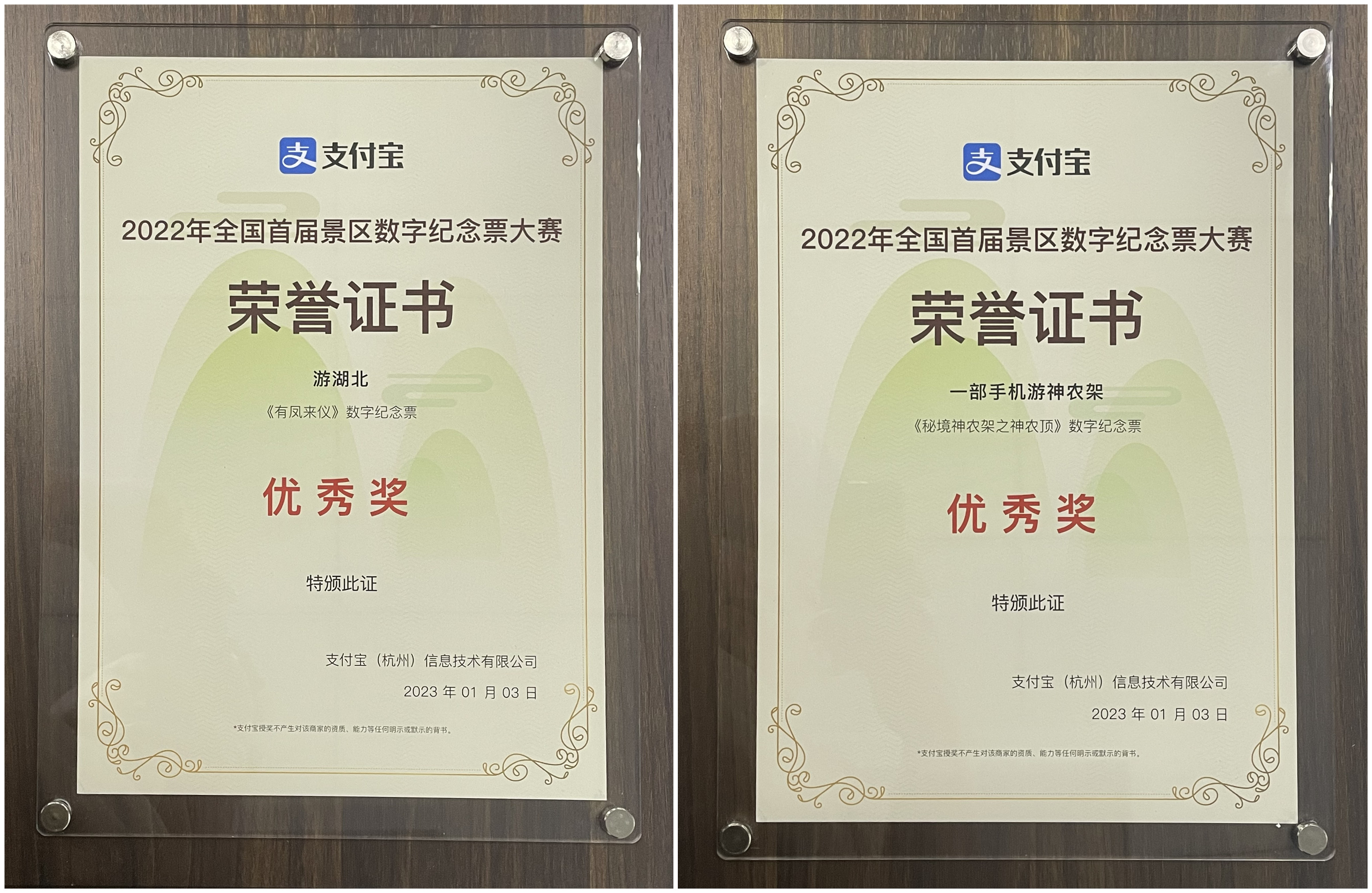 近日,由“游湖北”平臺(tái)創(chuàng)作的“有鳳來(lái)儀”及“秘境神農(nóng)架”系列數(shù)字紀(jì)念票獲2022全國(guó)景區(qū)首屆數(shù)字文創(chuàng)紀(jì)念票大賽“優(yōu)秀獎(jiǎng)”。
